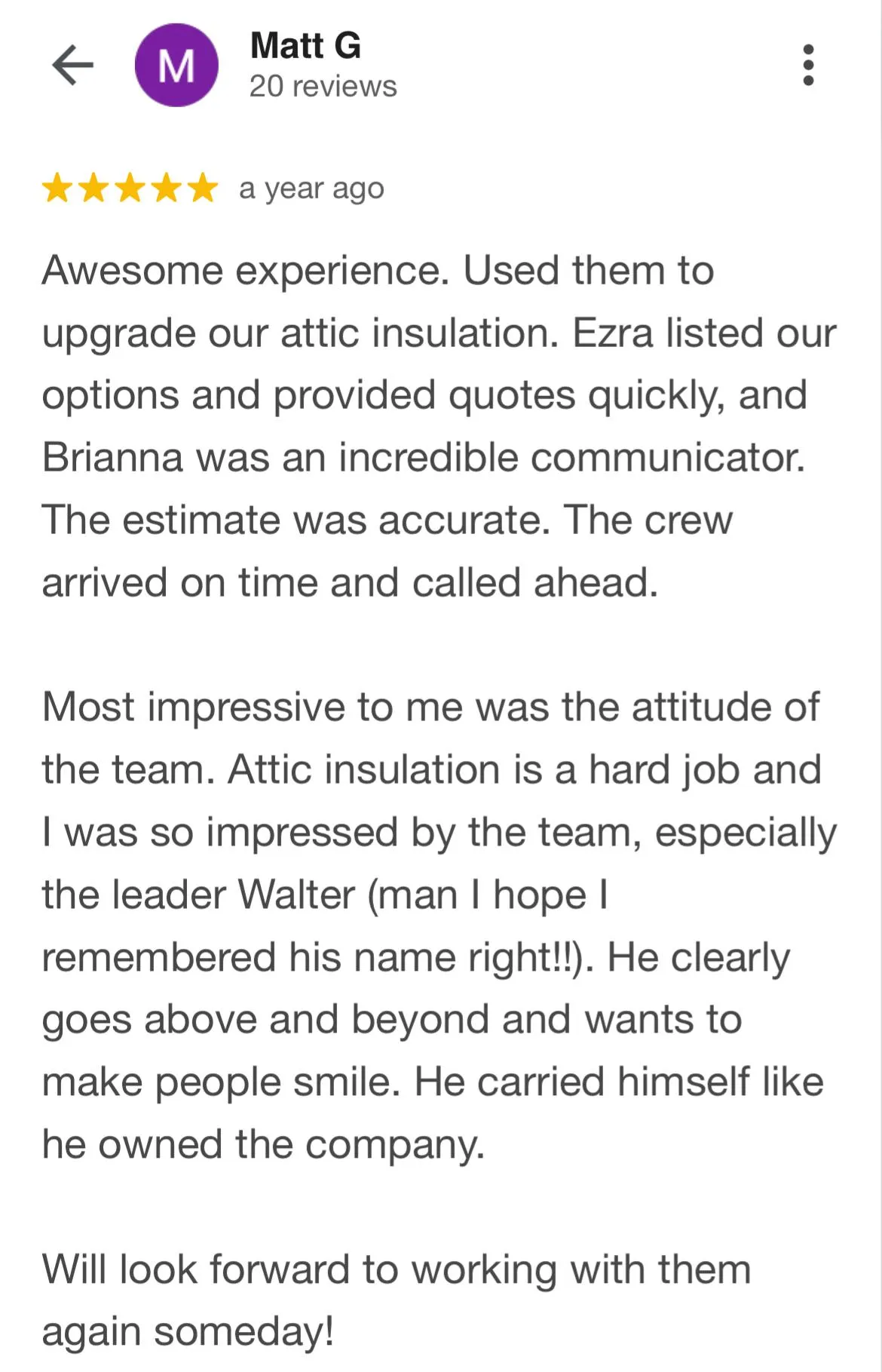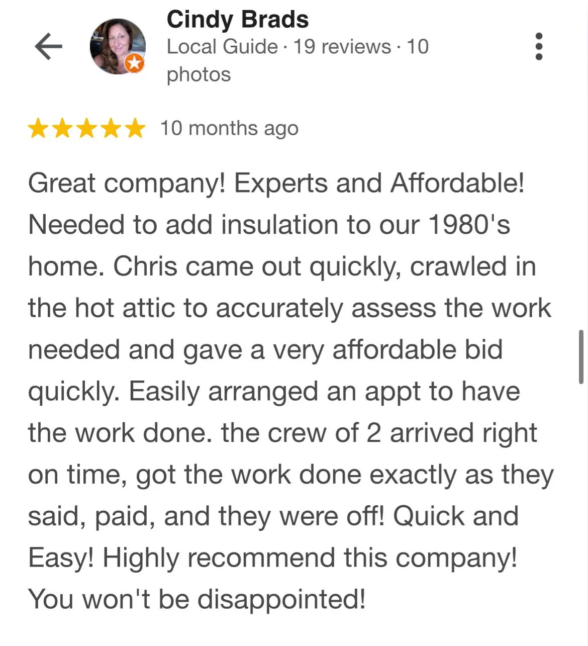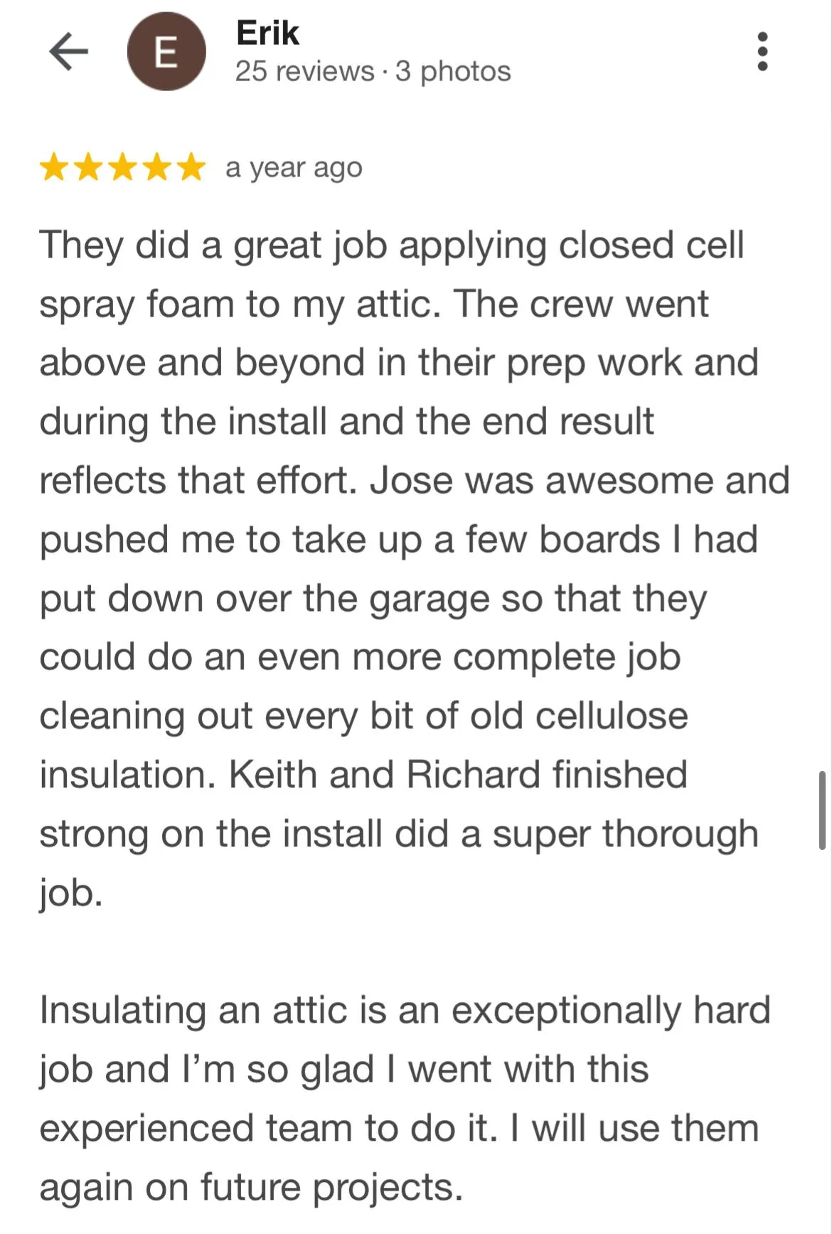 Within a few days, we’ll provide a free estimate that covers all aspects of the insulation install: price, schedule, warranty, and more.